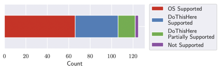 As mentioned abovewe said before, a significant portion (59 out of 125) of cross-app tasks are not yet well-supported by mobile OSs. Among these tasks, we found that DoThisHere can potentially help users reduce the amount of task switching and mental load for on 56 of these tasks (95%).