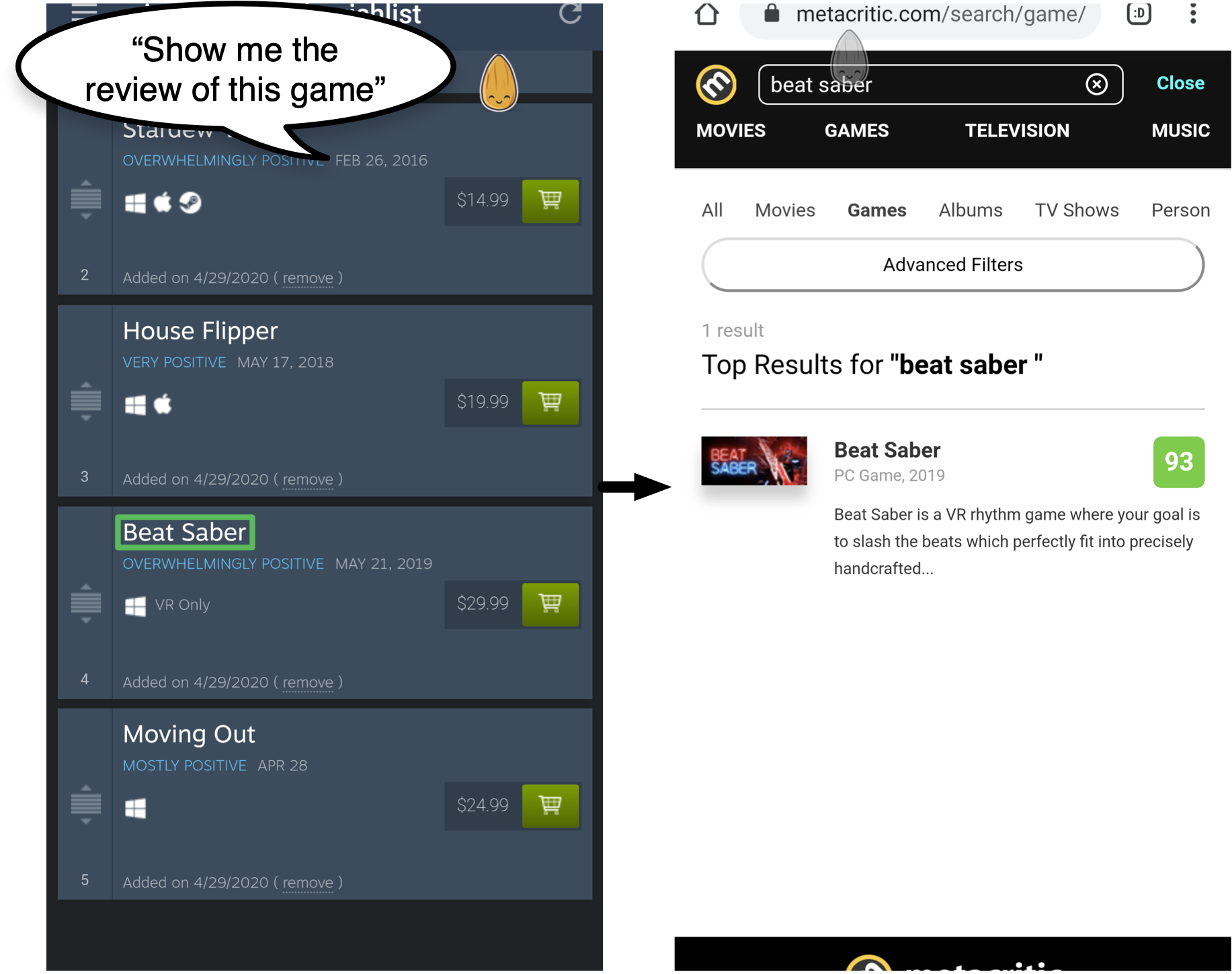 Many computing tasks, such as comparison shopping, two-factor authentication, and checking movie reviews, require using multiple apps together (cross-app tasks). However, today’s smartphones have small screens and limited windowing support, making it hard to switch contexts and exchange data between apps.