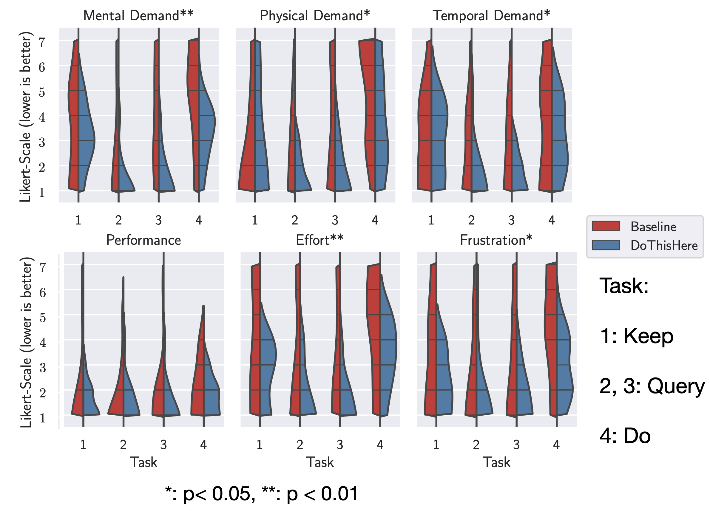 NASA-TLX results for Study 2 showed that DoThisHere can help reduce participants’ cognitive load while working on cross-app tasks. See more in the paper for a about task completion time comparison.